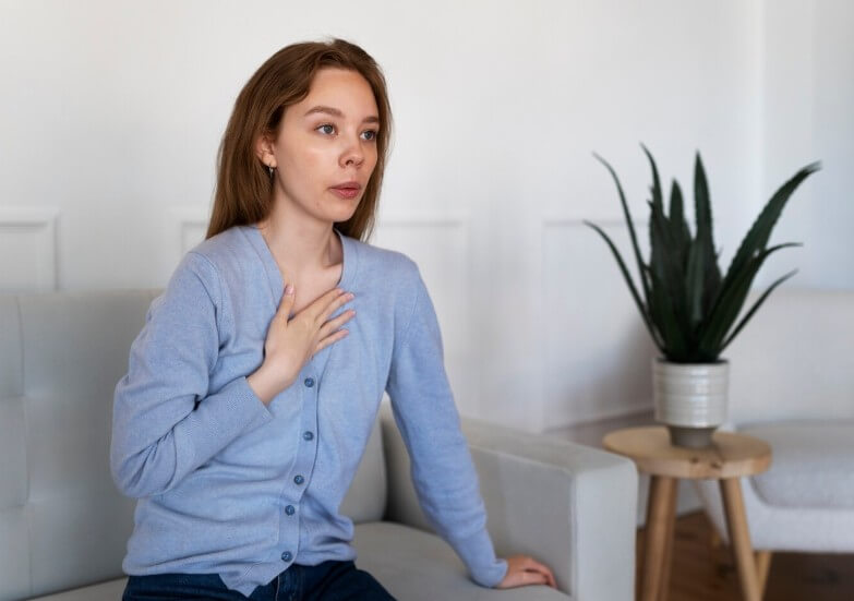 숨이 가빠지거나 숨을 제대로 쉴 수 없다는 느낌이 자주 나타납니다. 이로 인해 과호흡이나 가슴 압박감을 호소하며 공포감을 동반합니다.